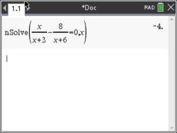 nSolve (x / (x + 3) - 8 / (x + 6) = 0, x) | x < -4